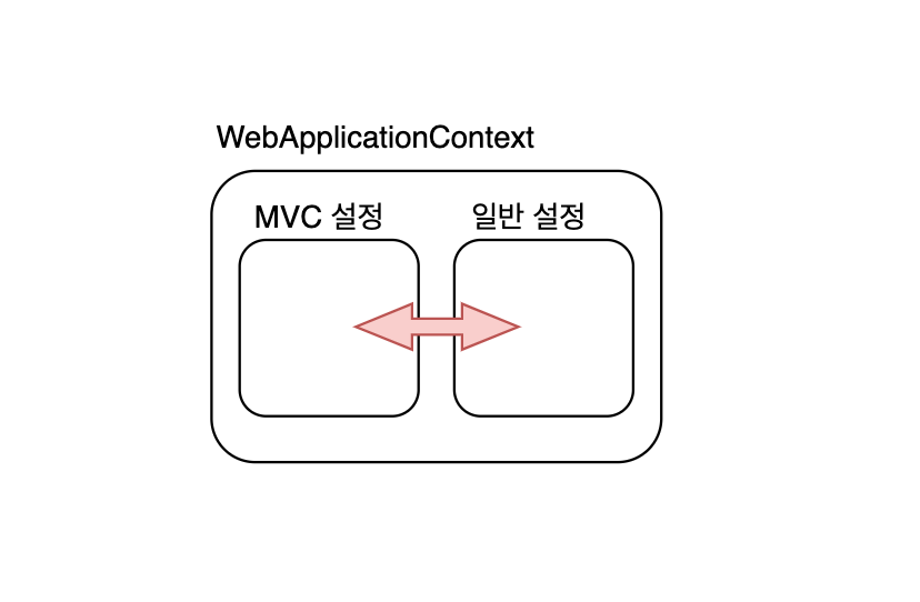 바깥쪽에 있는 WebApplicationContext라는 존재는 기존의 구조에 MVC 설정을 포함하는 구조로 만들어진다. 스프링은 원래 목적 자체가 웹 애플리케이션을 목적으로 나온 프레임워크가 아니기 때문에 달라지는 영역에 대해서는 완전히 분리하고 연동하는 방식으로 구현되어 있다.