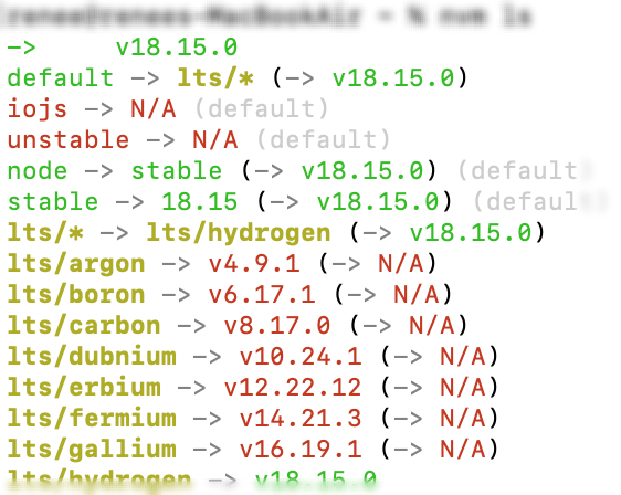만약 설치된 node 버전을 보고 싶다면 nvm ls를 해보자.