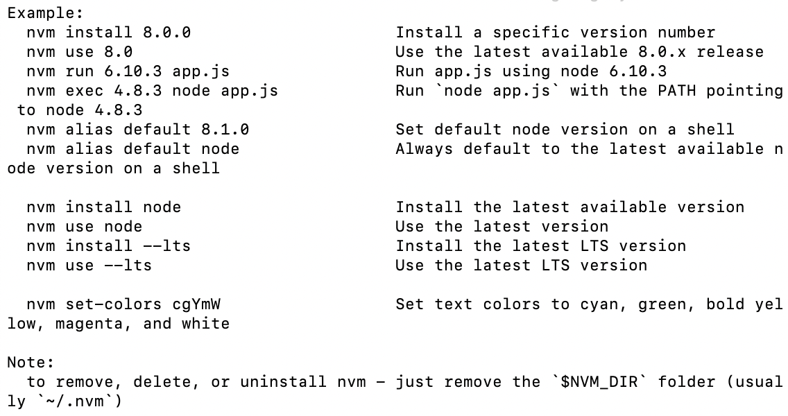 또한 nvm 이라고 명령어를 입력하면 아래와같이 뜬다.