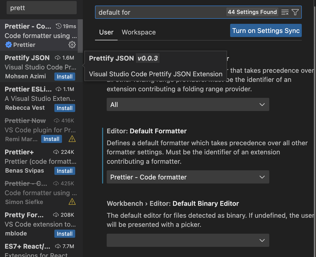 그 이유는 간단한데 VSCode에 Default Formatter로 Prettier가 설정되어 있지 않기 때문이다.