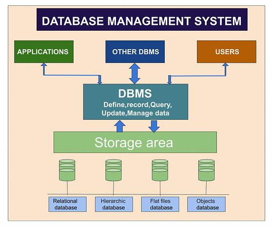 - 데이터베이스 관리 시스템(DBMS) : 데이터를 관리하고, 쿼리를 처리하고, 트랜잭션을 관리하는 소프트웨어